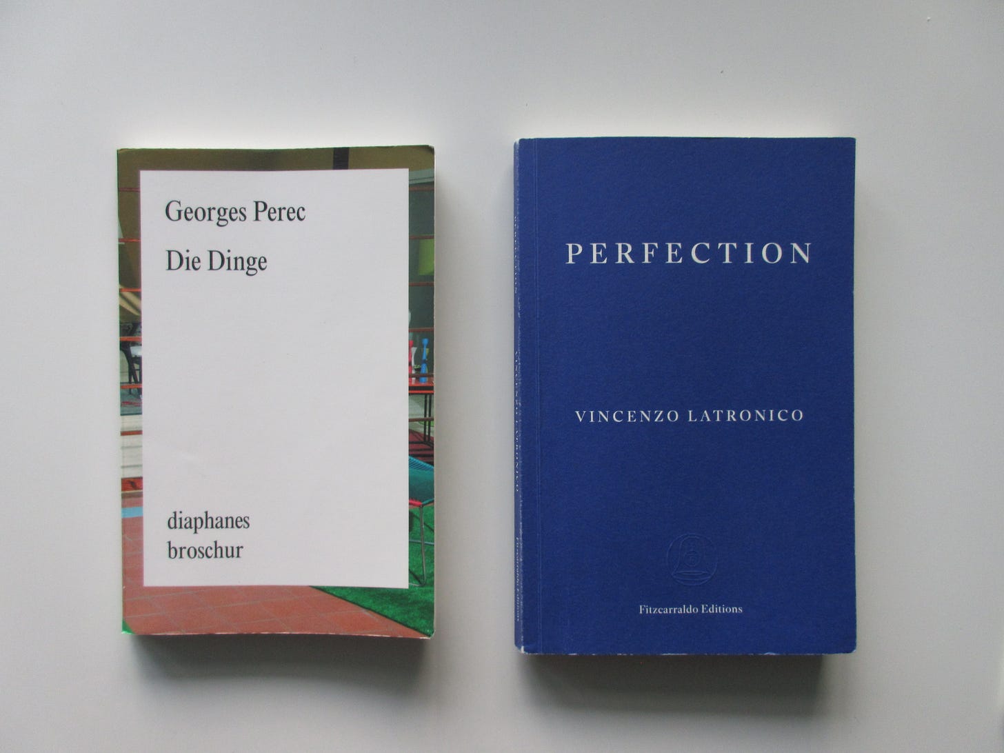 In Perecs Buch gibt es eine (zu) große Unsicherheit darüber, welches Leben gelebt werden könnte. In Latronicos Buch gibt es eine (zu) große Sicherheit darüber, welches Leben nicht gelebt werden darf. Deswegen werden diese beiden Bücher zusammengehören. Mir hat “Perfection” sehr gefallen (Achtung: Nicht auf Deutsch lesen).